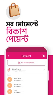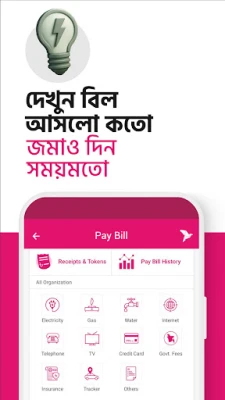 Igapäevaste tehingute tegemine pole kunagi olnud nii kiire ja täpne. Kasuta avalehel olevat QR-skanneri nuppu poodides maksmiseks, agendipunktides raha väljavõtmiseks või teistele bKash kasutajatele raha saatmiseks – kõik see veatult ja hetkega. Lae oma mobiiltelefoni kõneaega või tasu järelmaksuarveid kõigi suuremate operaatorite (Robi, Airtel, Banglalink, Grameenphone, Teletalk) jaoks otseteedega, mis muudavad protsessi eriti mugavaks. Lisaks saad bKash App abil tasuda kodust lahkumata oma elektri-, gaasi- ja internetiarveid ning avastada ja kasutada parimaid bKash pakkumisi, mis on sinu lähedal asuvates maksepunktides koondatud ühte sektsiooni. Sinu kõige sagedasemate tehingute jaoks on My bKash jaotises kiirklahvid, mis säästavad väärtuslikku aega.