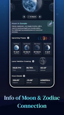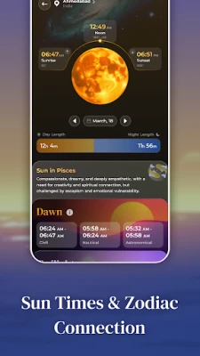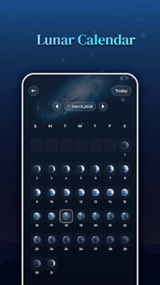 Sukelduge Moon Phases & Sun Calendar abiga Kuu lummavatesse rütmidesse, jälgides tänase päeva Kuu faasi alates noorkuust kuni täiskuuni ning ennustades täpsete kellaaegadega tulevasi tsükleid. Saate teada Kuu tõusu ja loojangu ajad, jälgida selle igapäevast sodiaagimärki ning süveneda detailidesse nagu Kuu kõrgus, kaugus ja asimuut. Päikese puhul pakub rakendus aga ülevaadet päikesetõusust, -loojangust ja päikesenoodist, päevade ja ööde pikkustest ning koidiku ja hämariku faasidest. Eriti fotograafidele on hindamatu väärtusega teave kuldse ja sinise tunni kohta, mis aitab püüda täiuslikku valgust. Kõik need andmed on kergesti ligipääsetavad detailse Kuu- ja päikesekalendri kaudu, kus saate iga kuupäeva puudutades avastada veelgi sügavamaid nüansse.